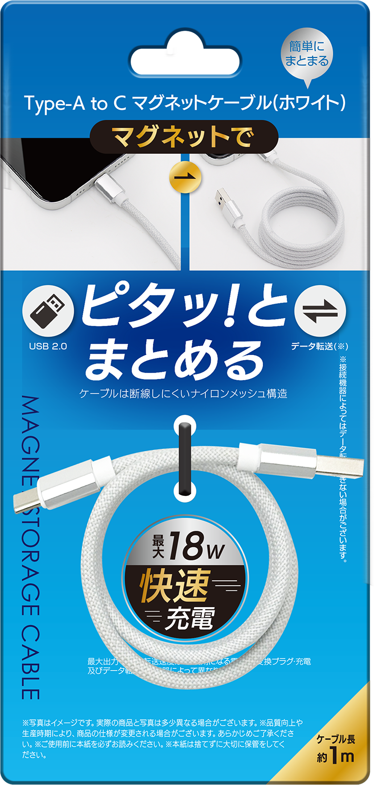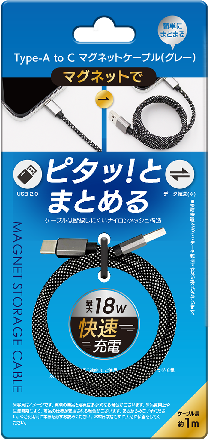 Type-A to C マグネットケーブル【ホワイト】【グレー】